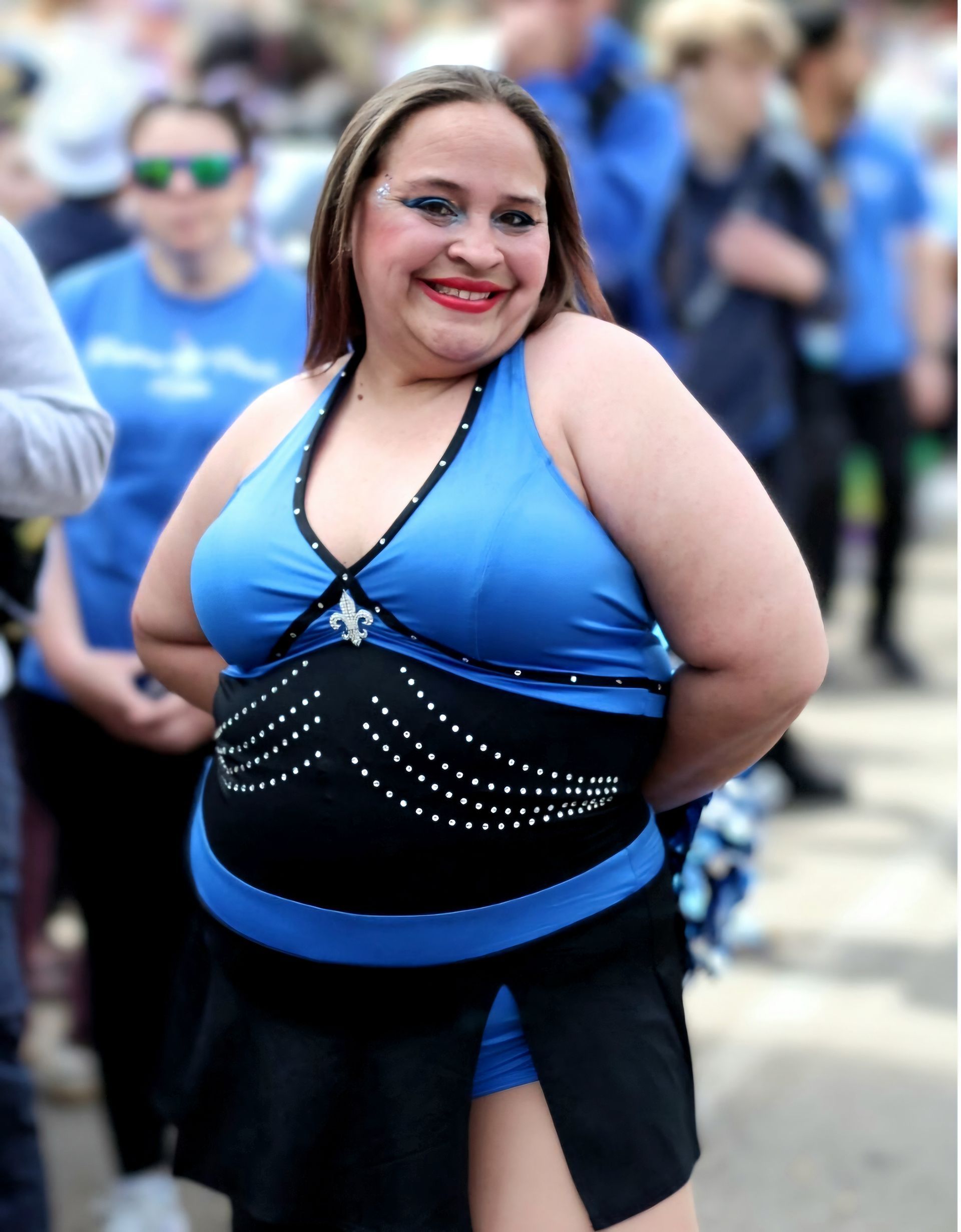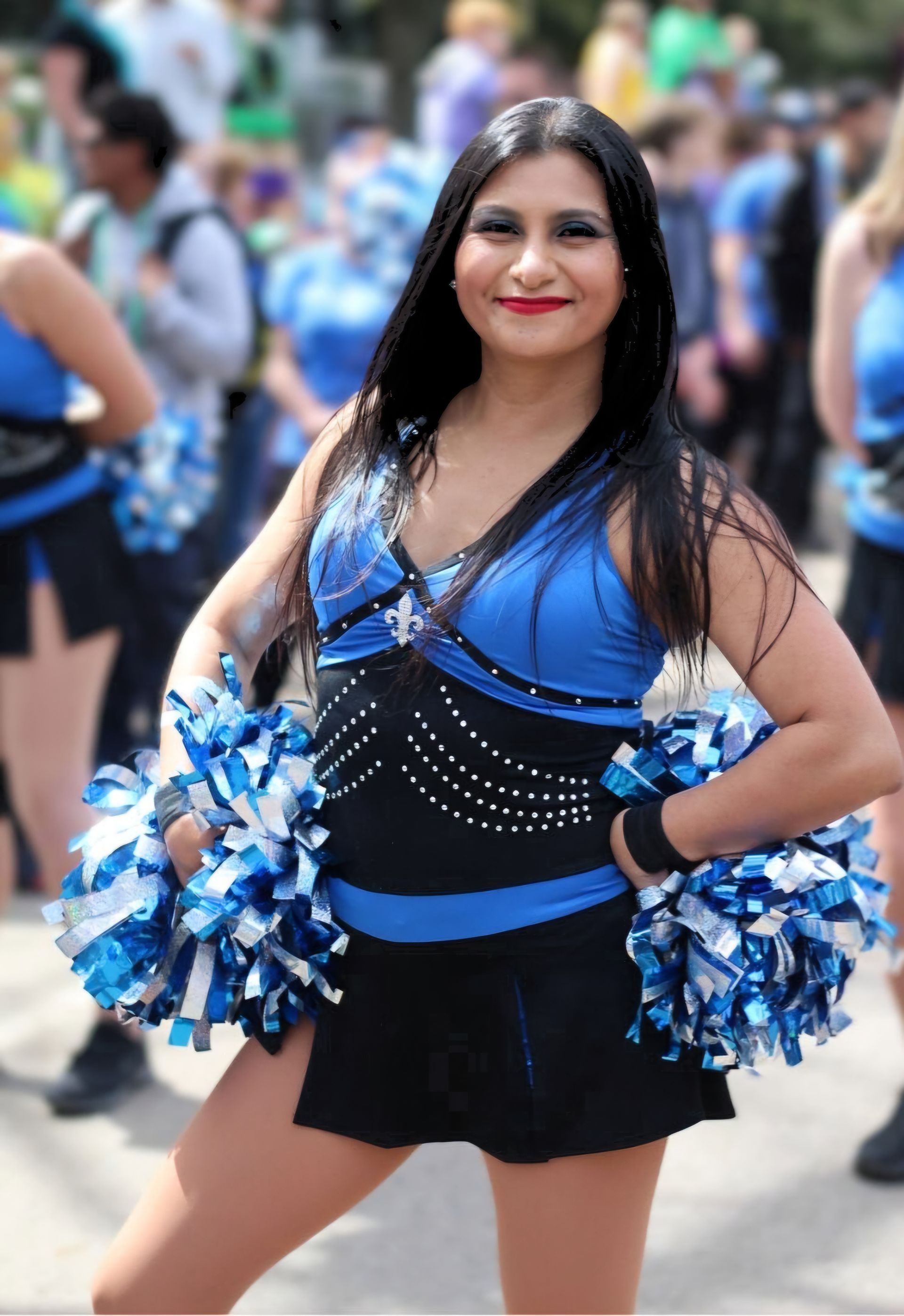 Kathleen is a wife and doggy mommy of a playful, silly little boy. Kathleen is also a phenomenally talented baking genius. Kathleen has performed on dance teams for over a decade. Kathleen helps ensure the Adult Team learns and perfects their choreography and is the Directors' right hand woman!